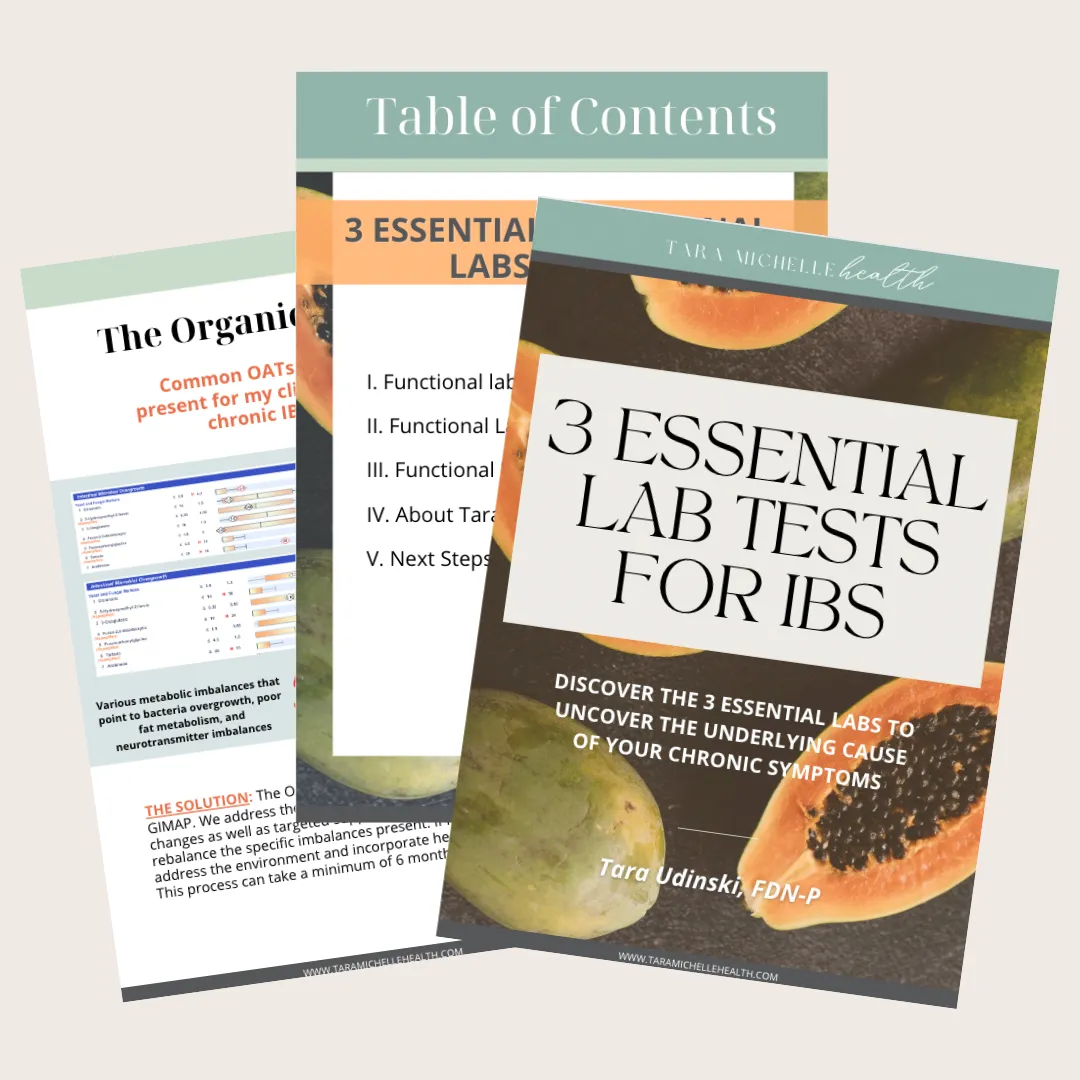 Check out my free guide on the essential labs to get to the root cause of your chronic IBS symptoms and how to overcome it for good.